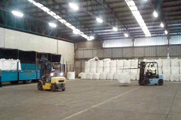 Storage of bulk and unitized cargo in our warehouse in the Nueva Palmira Free Zone.